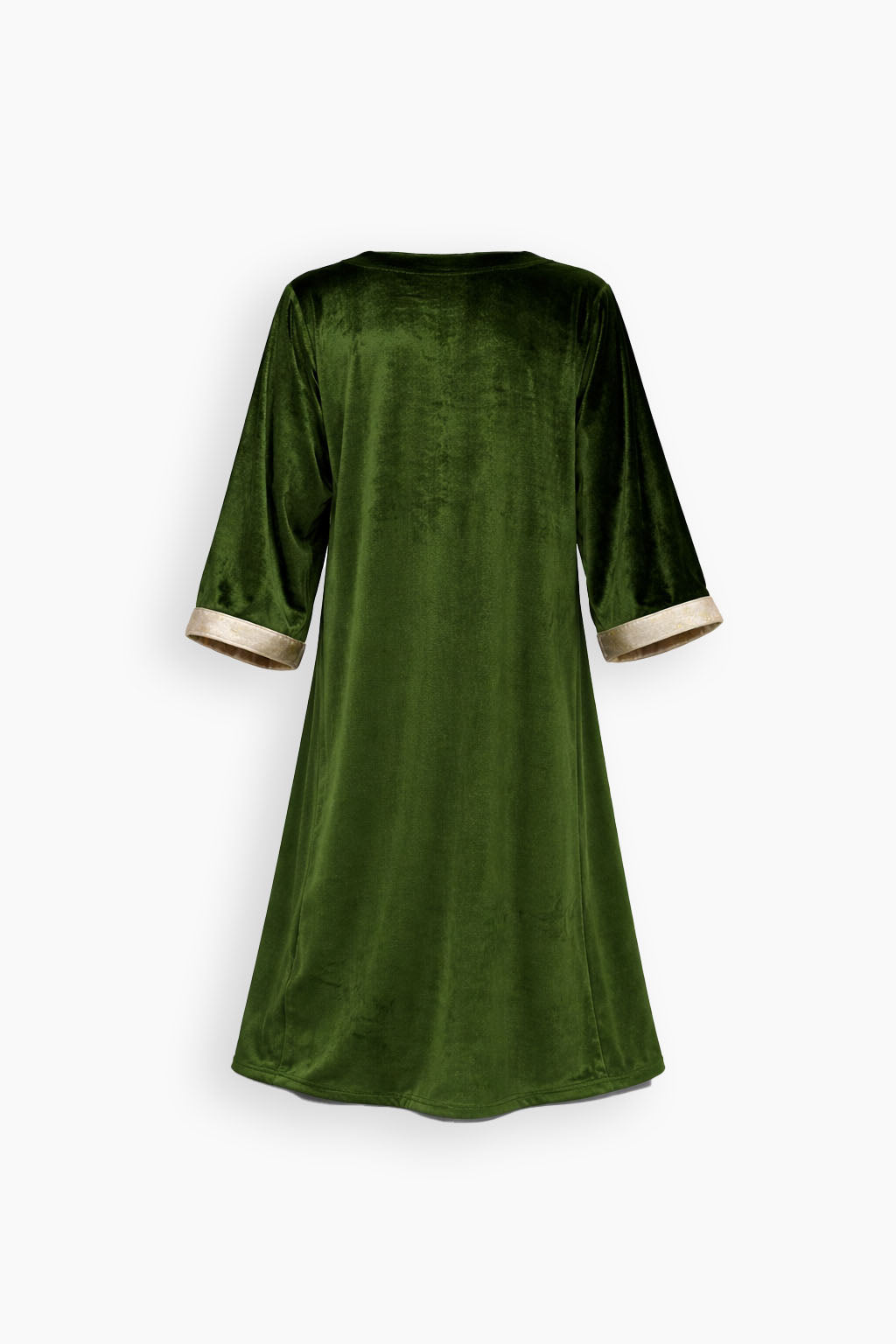 Crafted in soft luminous velvet, featuring a relaxed, flowing silhouette accented by a contrasting duo layer border at the neckline. Subtle hand-embroidered bird-inspired detailing, echoing the signature motif seen in our Sky Kaftan. Refined trim along the cuffs completes the design, offering a fluid, understated piece suited for evening wear.