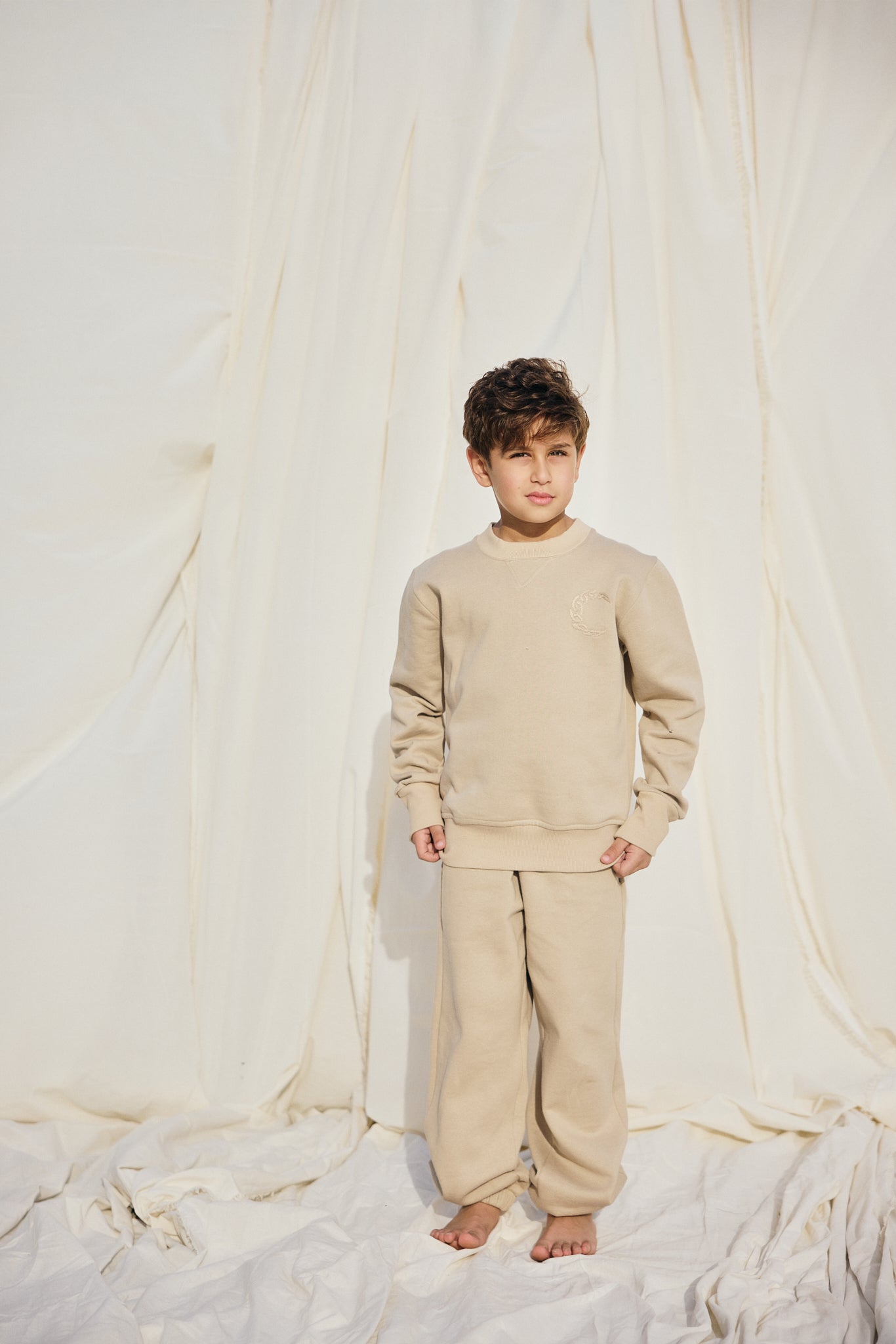 Handcrafted from soft Milton fabric, the Gradient Pants combine everyday comfort with refined detailing. Featuring gradient-embroidered pocket trims and a relaxed silhouette with elastic cuffs — designed to pair perfectly with the Moon Hoodie.