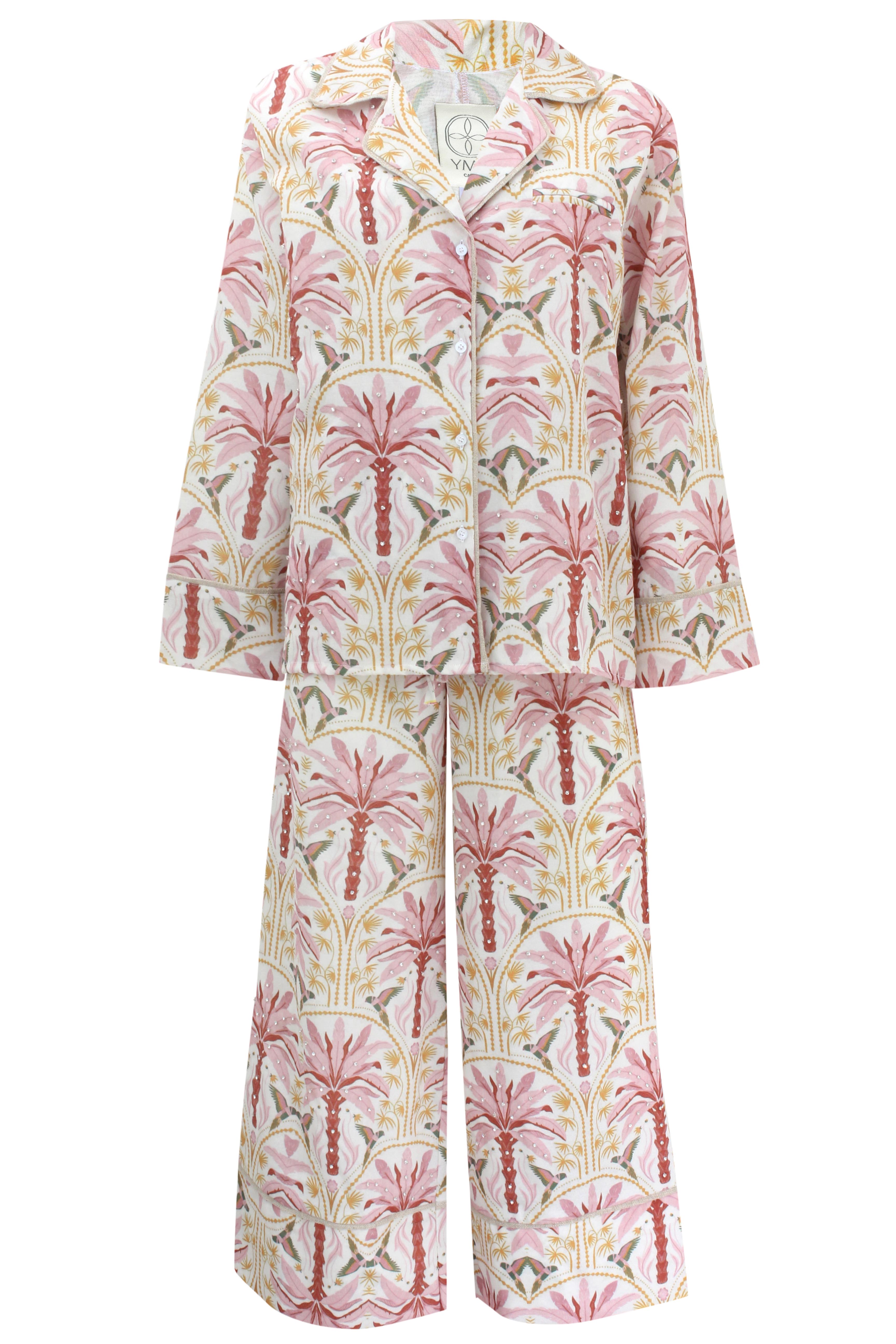 Crafted from organic cotton, the Palma Print Shirt is designed in a relaxed fit with a button-down front and collar. Detailed with pink palm trees printed across the fabric and finished with hand-embroidered rhinestone accents, it brings comfort and style together.