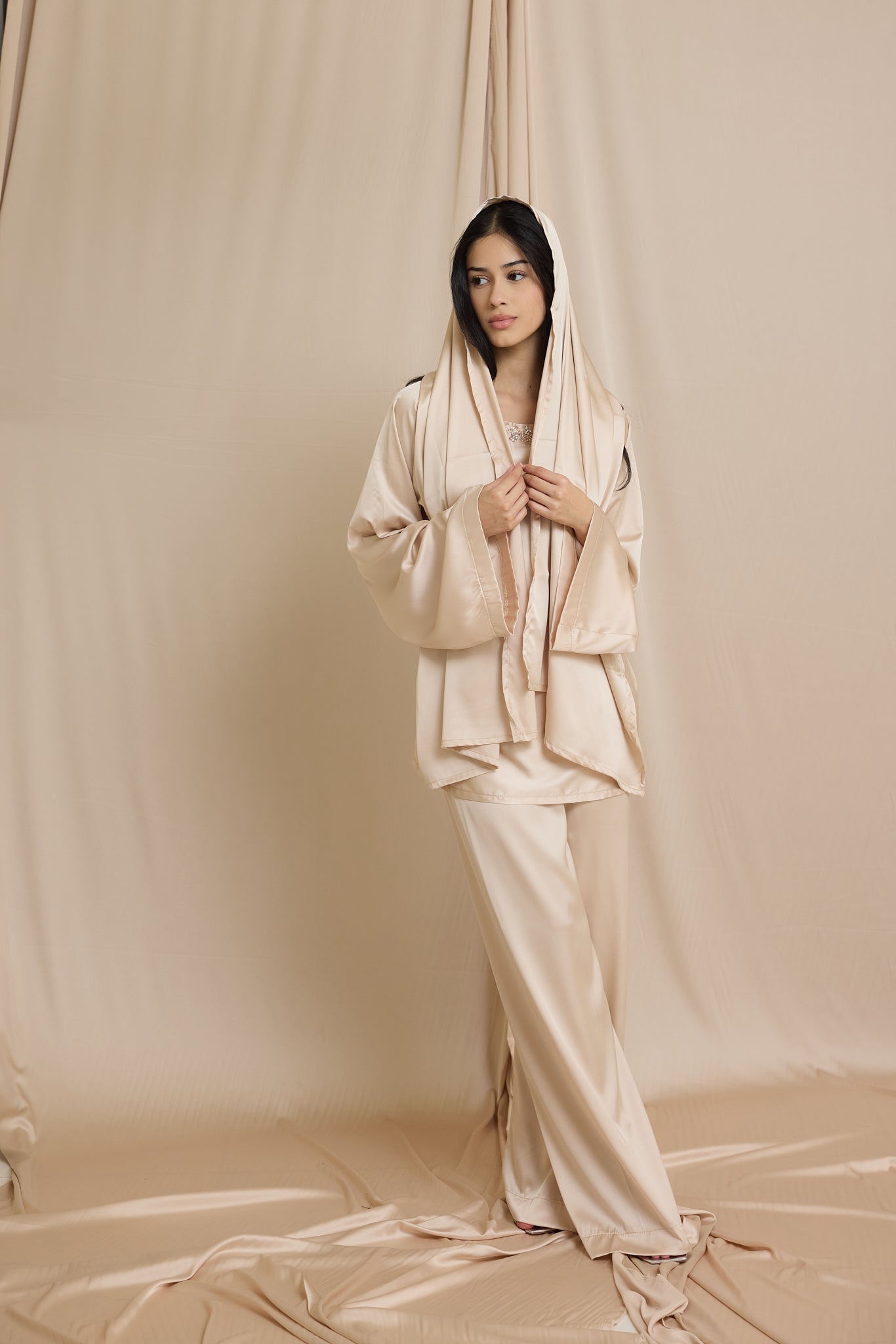 Soft satin headscarf designed to elevate your evening look. Designed for effortless coordination, it pairs seamlessly with matching kaftans and sets for a polished, cohesive look.