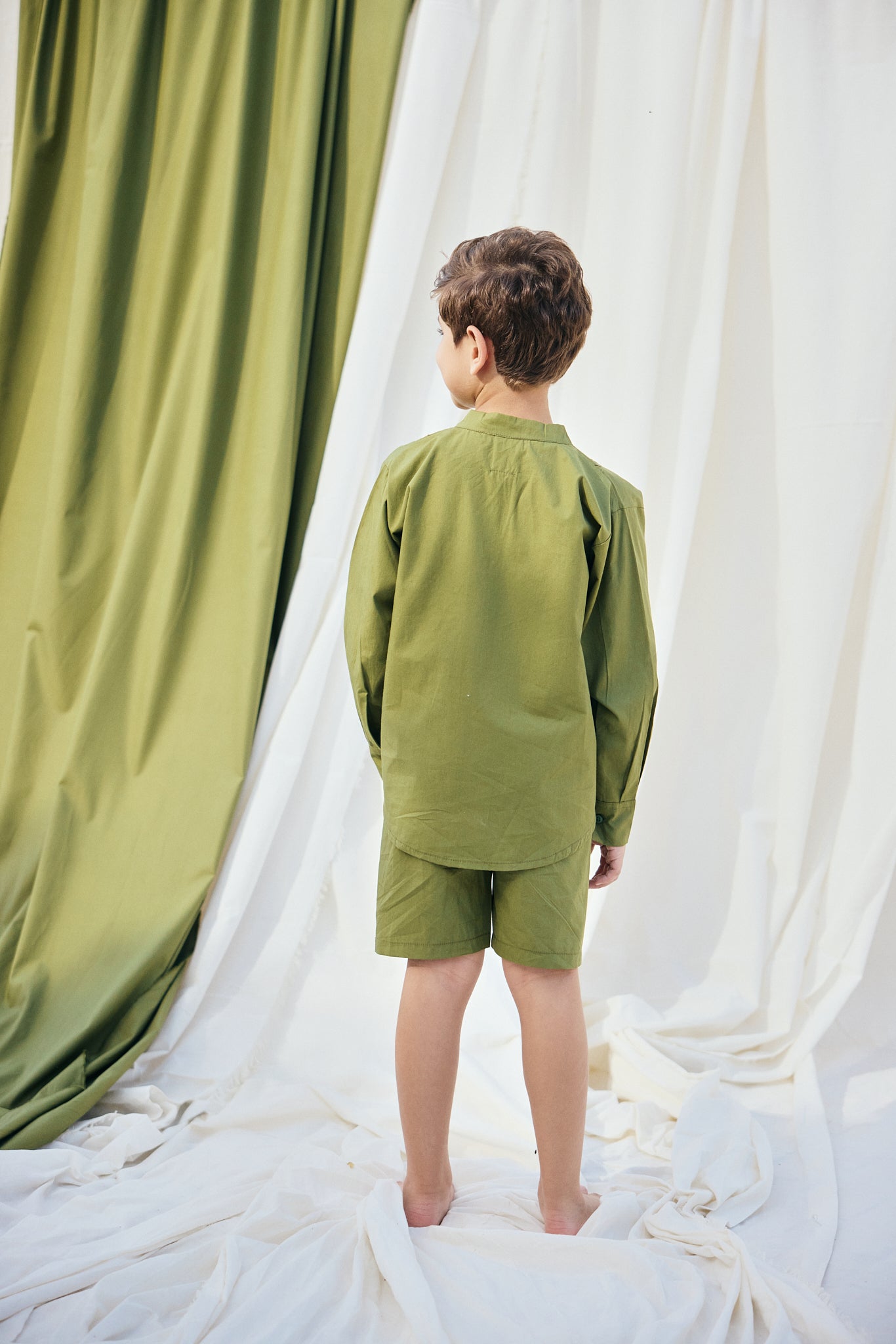 This poplin cotton shirt combines comfort with artisanal craftsmanship. Featuring a hand-embroidered mosaic pattern along the front, it showcases intricate detailing that sets it apart from everyday basics. The soft green fabric and long sleeves offer versatile styling for various occasions.